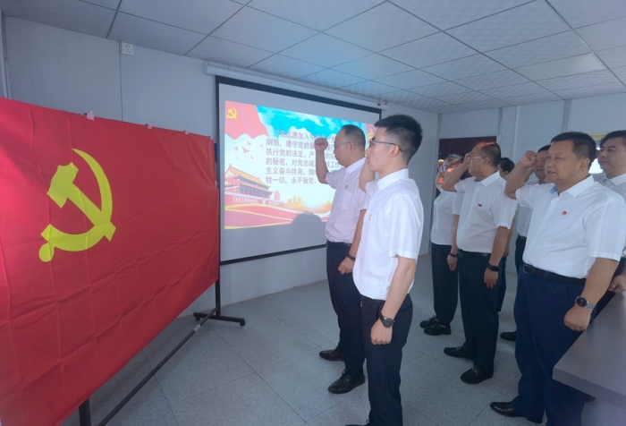 黨支部書記王小龍帶領新黨員入黨宣誓,老黨員一起重溫入黨誓詞。