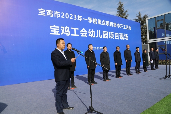1月28日,寶雞市2023年一季度重點(diǎn)項(xiàng)目集中開工活動在集團(tuán)公司承建的寶雞市總工會幼兒園項(xiàng)目現(xiàn)場舉行,市委書記楊廣亭下達(dá)開工令,市長王勇、市人大常委會主任景耀平、市政協(xié)主席劉榮賢、市委副書記段小龍參加活動。市委常委、常務(wù)副市長賈珉亮主持開工活動。市人大常委會副主任、市總工會主席陳小平介紹項(xiàng)目情況。
